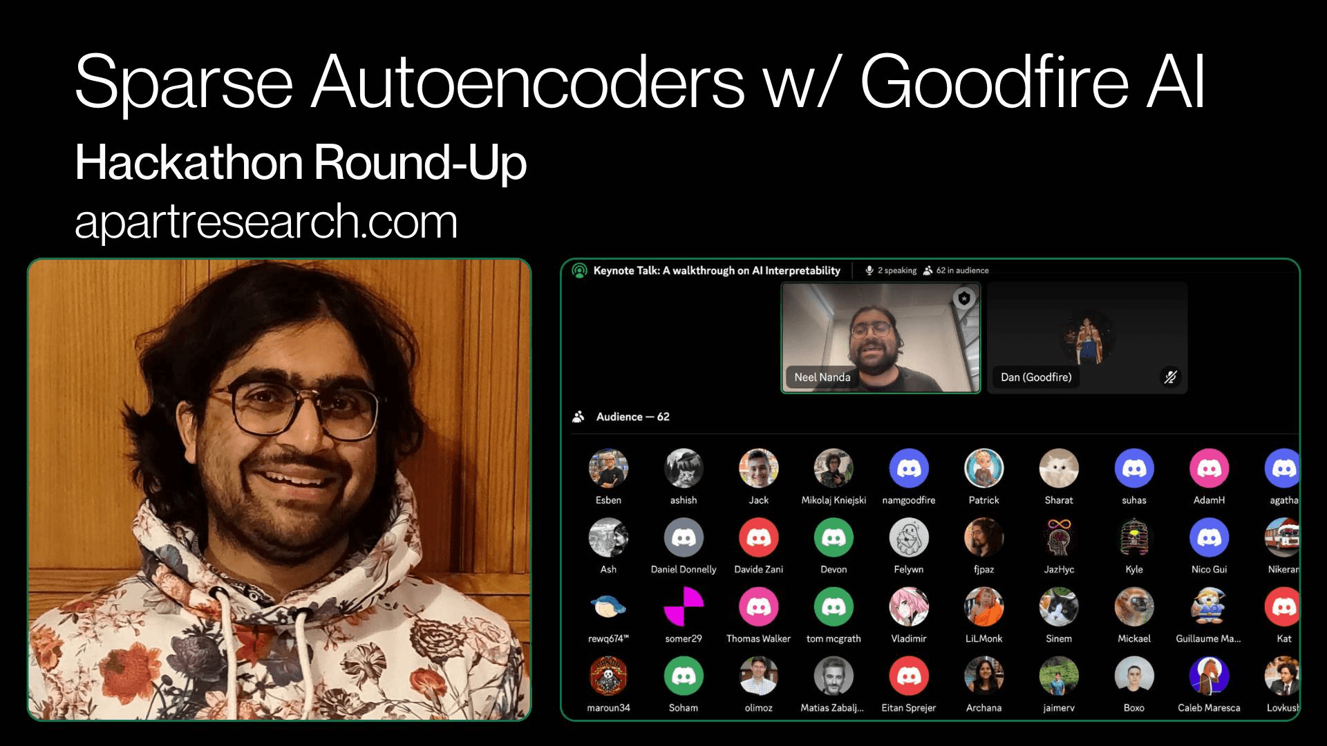 Want to read more about our Sparse Autoencoders Hackathon with Goodfire? Read our full write and revisit the talk from Google DeepMind's Senior Research Scientist, Neel Nanda, here.