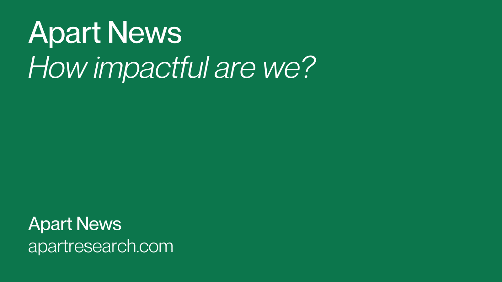 Given current AGI development timelines, the need to scale and improve safety research is urgent. In our view, Apart seems like one of the better investments to reduce AI risk.