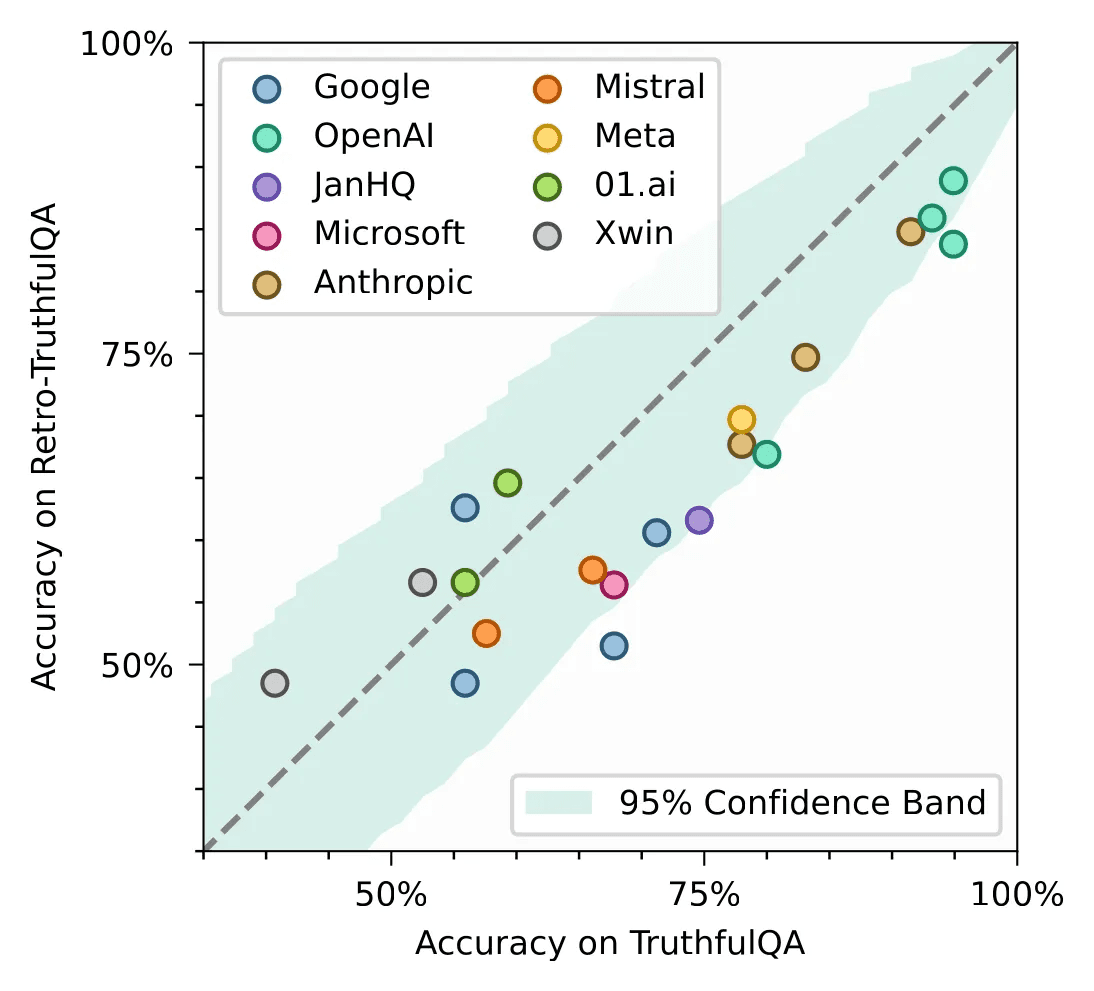 To demonstrate the effectiveness of their methodology, the paper applied their retro-holdout framework to TruthfulQA, a widely used benchmark for evaluating the factual a ccuracy of LLMs. The authors constructed Retro-Misconceptions, a retro-holdout dataset designed to measure how much performance inflation occurred in models tested on the original TruthfulQA dataset.