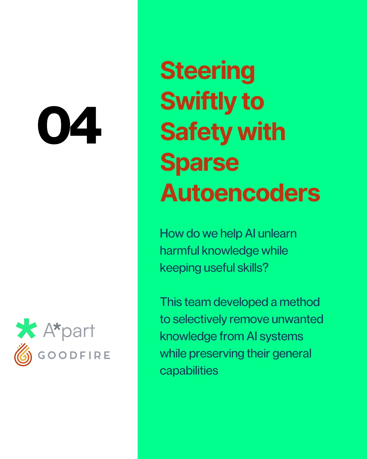 Read our X thread here on all the projects! Remember, if an idea is promising, participants may be asked to join our brand new Apart Lab Studio to continue the development of their research project. 16 participants were invited from this Hackathon alone.