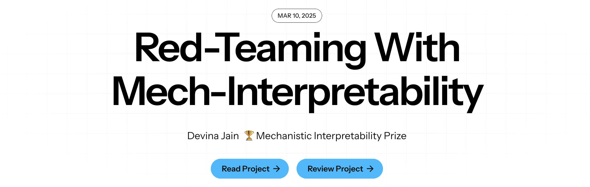 [2] Mechanistic Interpretability Track: Red-teaming with Mech-Interpretability, by Devina Jain
