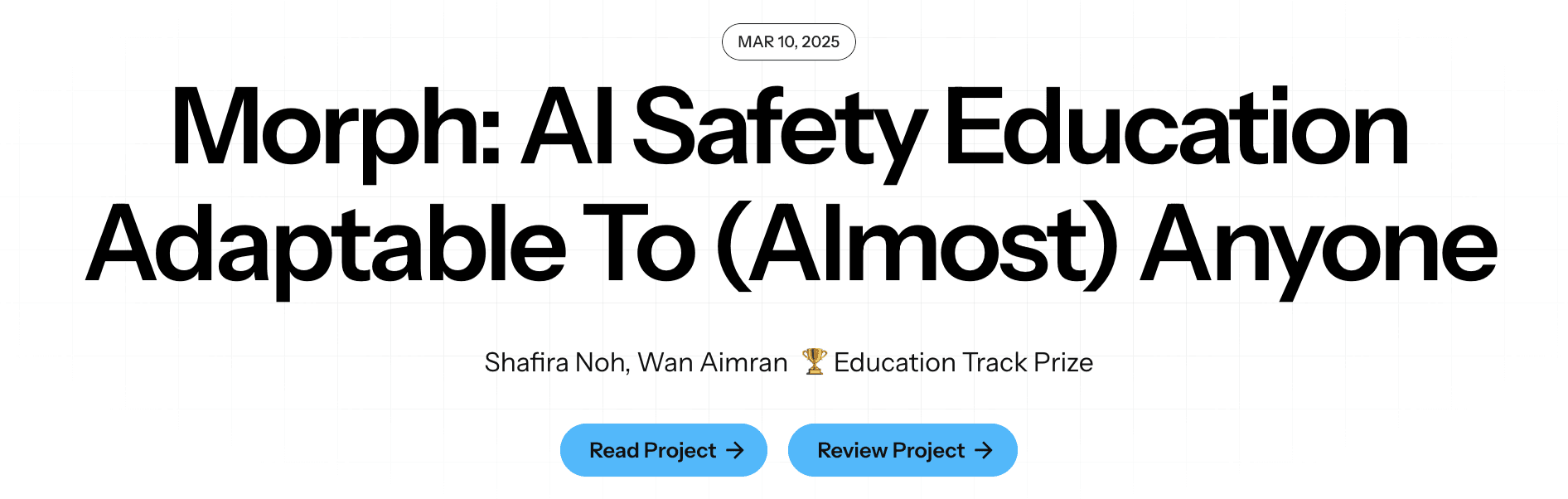 [3] Education Track: Morph: AI Safety Education Adaptable to (Almost) Anyone, by Shafira Noh, Wan Aimran