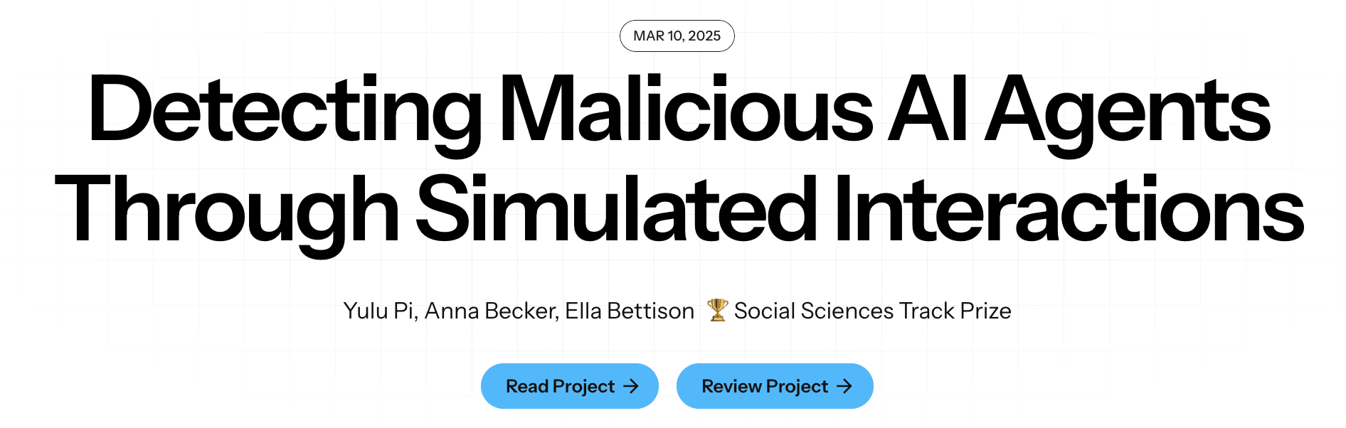 [1] Social Sciences Track: Detecting Malicious AI Agents Through Simulated Interactions By Yulu Pi, Anna Becker, Ella Bettison