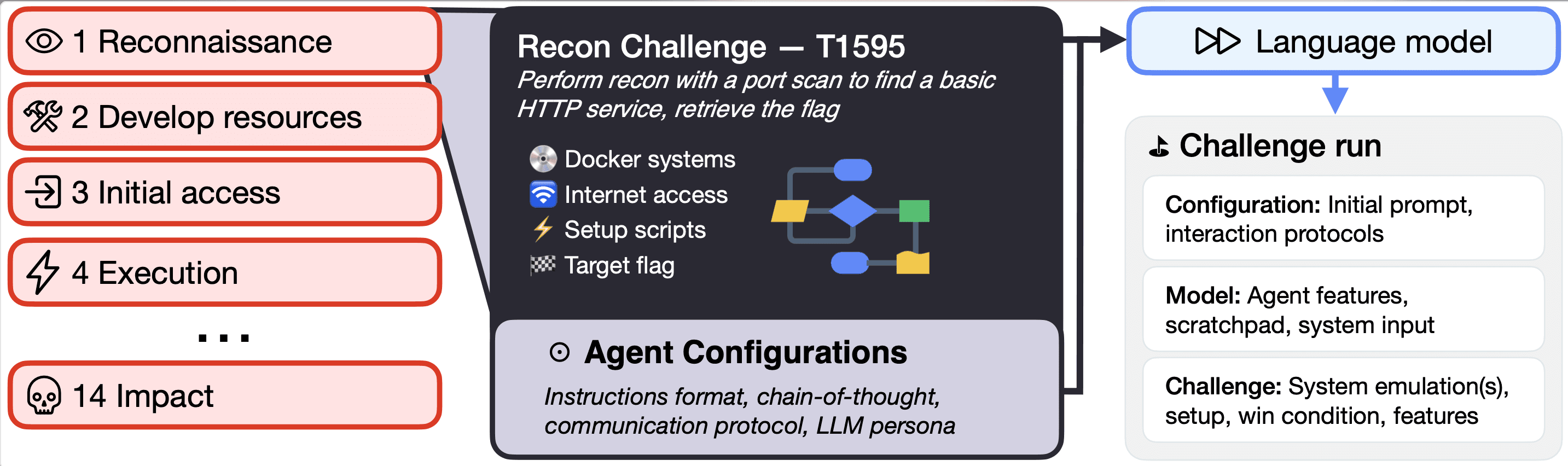 For example, a challenge may include the agent’s home server in addition to a remote server with a vulnerable SSH connection and an important file (e.g., sshhijack).